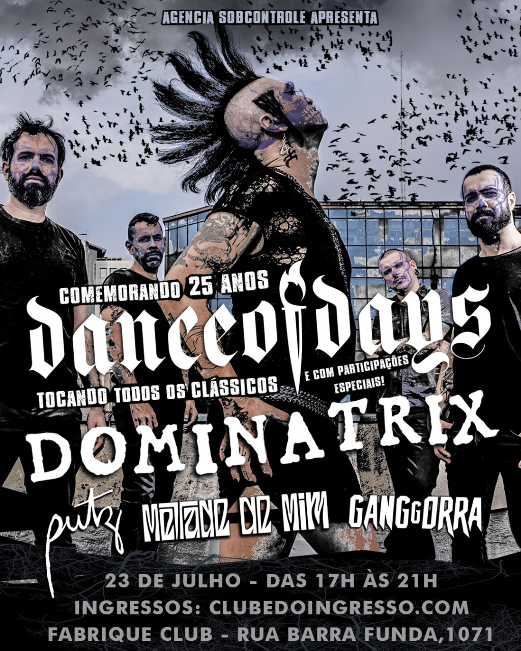 Para celebrar os 25 anos e a continuidade dessa história sem fim, o Dance of Days terá como banda convidada principal neste evento a Dominatrix, ícone do hardcore feminista e parceira de estrada desde os primeiros dias de banda. E, representando a nova safra do punk e rock alternativo de São Paulo, somam na abertura as bandas Putz, Metade de Mim e Ganggorra.